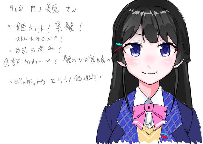 #にじさんじとホロライブ描きまくって画力上げる #みとあーと にじホロ研究会9人目 #月ノ美兎 さん😊 今日は11/07で良い女の日なんだそうです。 黒髪ストレートのロングで姫カット。 理想のタイプ。 プロフ画像だけ参照してるので不明瞭ですがきっとサイドの髪を後ろで結んでるっぽくて、それも好き。