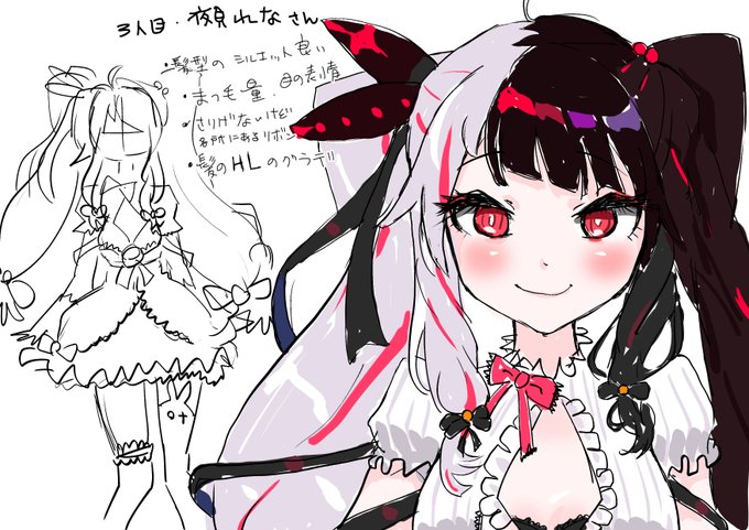 #にじさんじとホロライブ描きまくって画力上げる #れなの鳥っくあーと というわけで、にじホロ研究会3人目はリクエスト頂いてにじさんじ #夜見れな さんです♪ 目が可愛い😊 髪のシルエットが可愛い☺️ あと衣装描くの大変🤣 やっぱ可愛さと見栄えっていうのは情報量だよなー