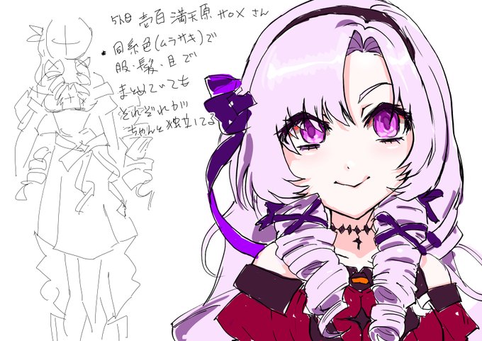 #にじさんじとホロライブ描きまくって画力上げる #サラ星図 描いた後、恒例のFAとか動画とか見まくるタイムで気付いたんですが、彼女オッドアイだったんですね! 公式画像ウィンクしてんだもん😣推しの皆さん申し訳ございません😭ああだからリボンとか襟とかも対の2色なのか!あああ可愛いよお…!