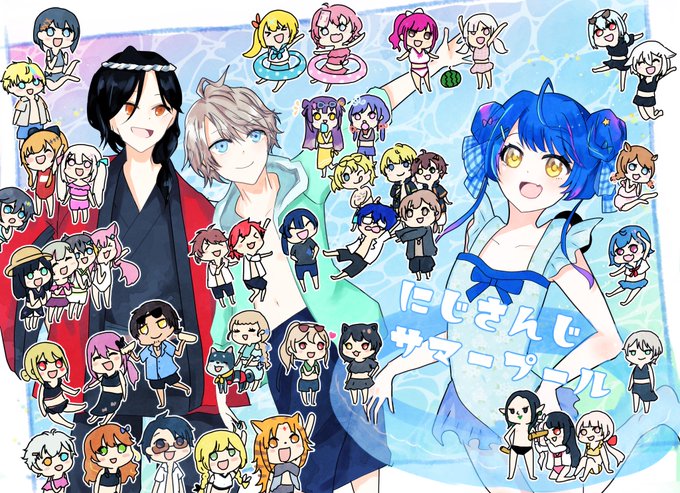 プール開きでの国際男子達がめっちゃ楽しそうで見てるこっちも楽しかった!!!!素敵な時間をありがとう☺️ had a very good time! Thank you☺️ #にじさんじサマープール #HaYun_Art #suha_art #Briskart #drawluca #長尾百景
