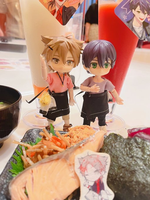 スイパラー☺️✨ おはガク食べた!!! おにぎりでっかい!!!! 衣装は、なんとかできたスイパラ海の家コスプレをして貰いました✨✨ 私は海の家には行けないんだけどさ……🤣 #にじさんじドール部