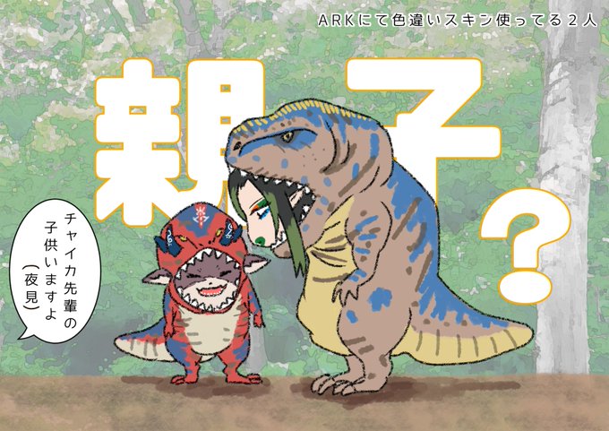 にじレジ(株)ARKで同じスキン使ってるでび様見て、夜見が子供いますよって言っててまた家族増えてたチャイちゃん。 恐竜スキンかわいい。 youtu.be/qyxilwRZCec #お花畑青空大写生大会 #でびるさまにささげるえ #にじARK