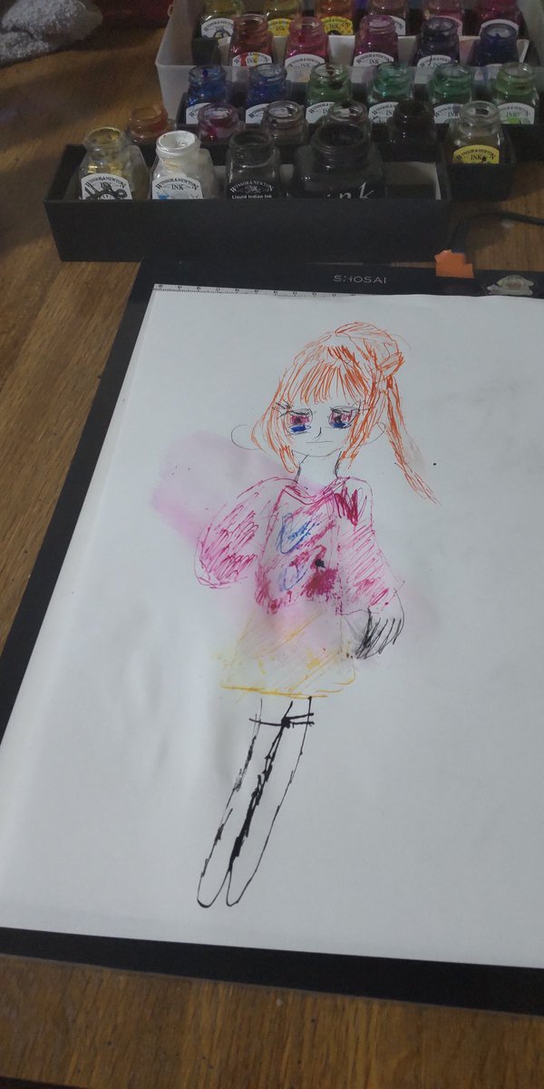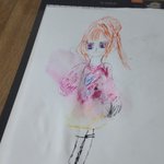 Grin. Another watercolor painting, this time of a character I'm workin' on. #watercolor_painting #watercolor #grin #coin #facialexpressions #characterdesign #watercolorpaper #絵 #絵画 #水彩画 #女の子 #笑顔 #にっこり #硬貨 #表情 #キャラクターデザイン #オリジナルキャラ #예술