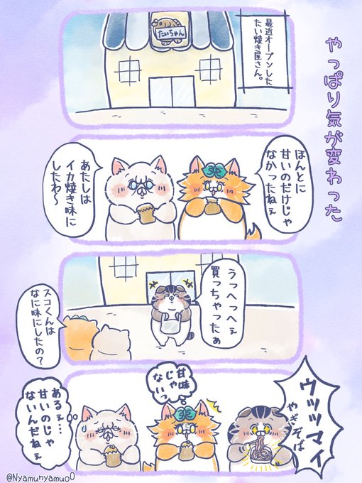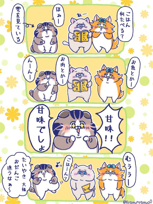 【やっぱり気が変わった】 お好みたい焼きすっき😻 #ねこ #ゆるい絵 #創作 #オリキャラ #4コマ漫画 #漫画 #漫画が読めるハッシュタグ #みんなで楽しむTwitter展覧会 #Twitter交流会会場 #にゃむにゃむず