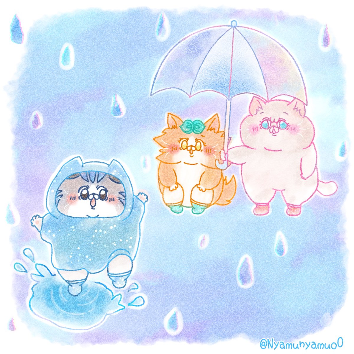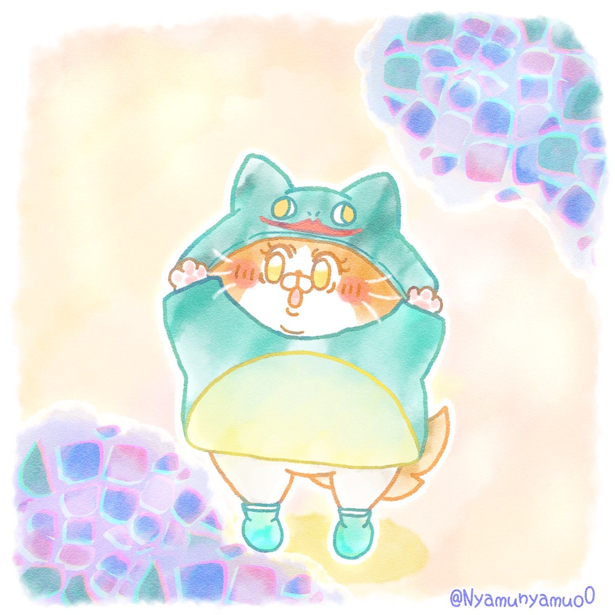 【ニャァアア】💙✨💜✨💙 カエルさんのレインコート🐸 #創作 #illustraion #ねこ #アトリエの系譜S #みんなで楽しむTwitter展覧会 #ゆるイラスト #絵描きさんと仲良くなりたい #にゃむにゃむず #potofu