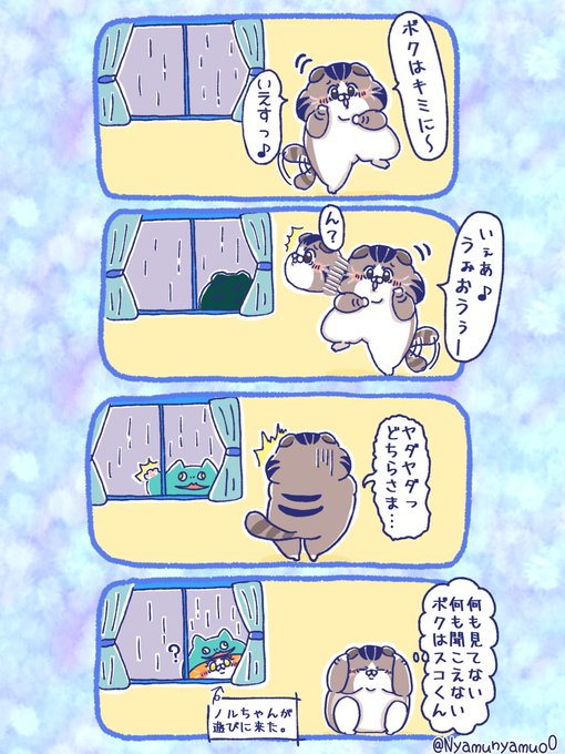 【 雨の日の過ごし方 】 スコくん自作曲キミにYES!🐱🎶 #ねこ #ゆるい絵 #創作 #オリキャラ #4コマ漫画 #漫画 #漫画が読めるハッシュタグ #みんなで楽しむTwitter展覧会 #Twitter交流会会場 #にゃむにゃむず