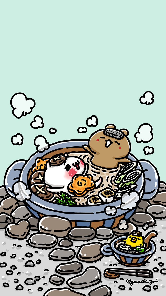 🍲11月🍲 公式アカウントにてLINEトーク用の薄め壁紙を配信しました🌟 line.me/R/ti/p/%40igar… テーマは「鍋型露天風呂」です♨️ Twitterでは濃いめ壁紙をどうぞ! #にゃんことくま #食べられません #具は飾り #愛しすぎて大好きすぎる。