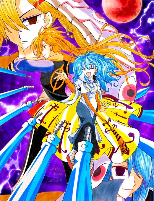 ☪アカハル/リク絵⑥☀️ 『闇堕ち』 ☀️「ねぇ、遊ぼうよ🎶」 ☪「(あいつから潰す🎵)」 笑いながら戦いを楽しむstyle 獲物は必ず仕留める雰囲気 こういうのが好きです💖 (衣装アレンジ☘️) リク有難うございました💗⸜(*ˊᗜˋ*)⸝💗 #にゃんこのアカハルチャレンジ2023 #イラスト #二次創作