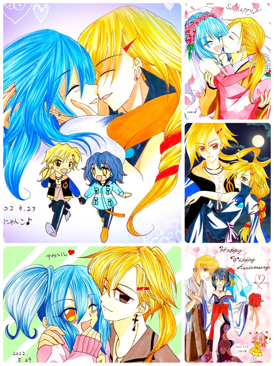 #妻の日 ワンドロ感覚でザックリ仕上げ🎵 アカハルコレクション増えたー😆💗 ハルはサポートも癒しもバッチリ✨✨ 可愛いお嫁さんもらえて幸せな暁🤭 これからもずっと幸せ💕💕 (捏造設定です😌🍀) #にゃんこのアカハル暴走部屋 #みんなで楽しむTwitter展覧会 #イラスト #二次創作