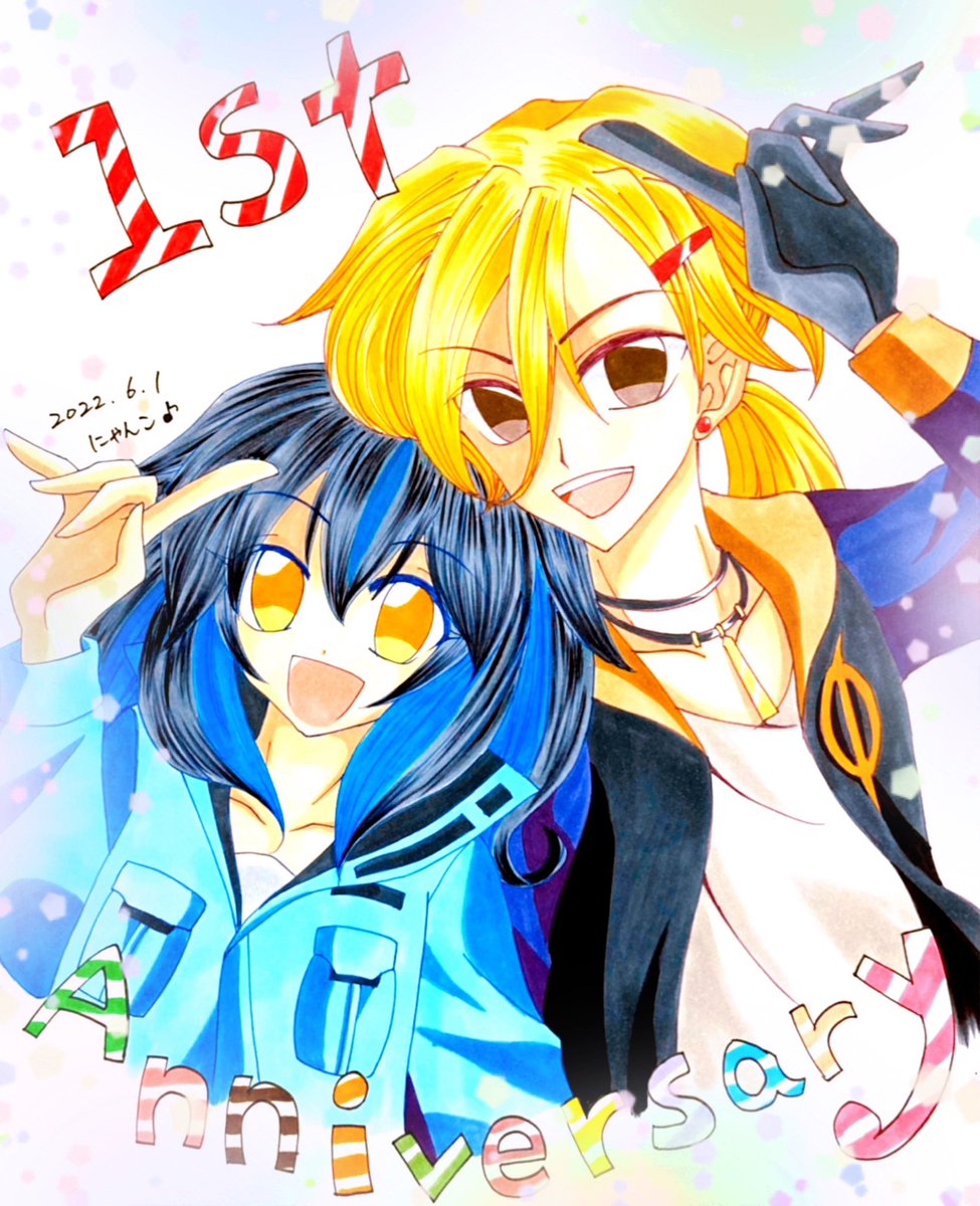 ✨🌸2nd Anniversary🌸✨ ハレルヤアニメ&実装2周年おめでとう✧ \( °∀° )/ ✧ 今年もシリアス系になっちゃったけど、まぁいいや(๑° ꒳ °๑)笑 これからも輝き続けるのだよ🎵✨ (サポートは任せろ👍💖👈🤣) #にゃんこのアカハル暴走部屋 #イラスト