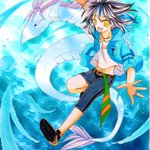#水の日 今日は水の日と言う事で、水龍と戯れるハレルヤ描きました🎵 (衣装・配色など部分的に夏仕様に捏造アレンジ💖) 水龍は暁をイメージ(笑) 無駄に余白あるけど気にしない🥳 8月も宜しくお願いしまーす⸜(*ˊᗜˋ*)⸝ #にゃんこのアカハル暴走部屋