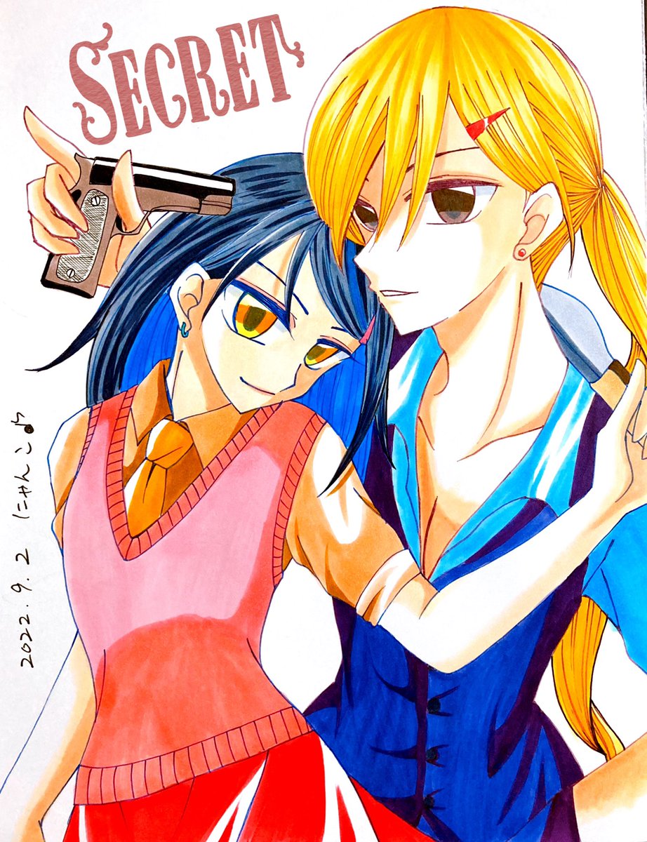 🎬ブレットトレイン🚃 💖PRINCE&TANGERINE💖 メインBLでコスプレ🎵 昨日、映画観ながらイメトレしていた人(՞*´艸`*՞)アハ♪ 俳優さん達最高😂💕💕 🍀有り得ない銃の持ち方させてます(笑)英語は深い意味ありません🤣 #にゃんこのアカハル暴走部屋 #アナログ #イラスト