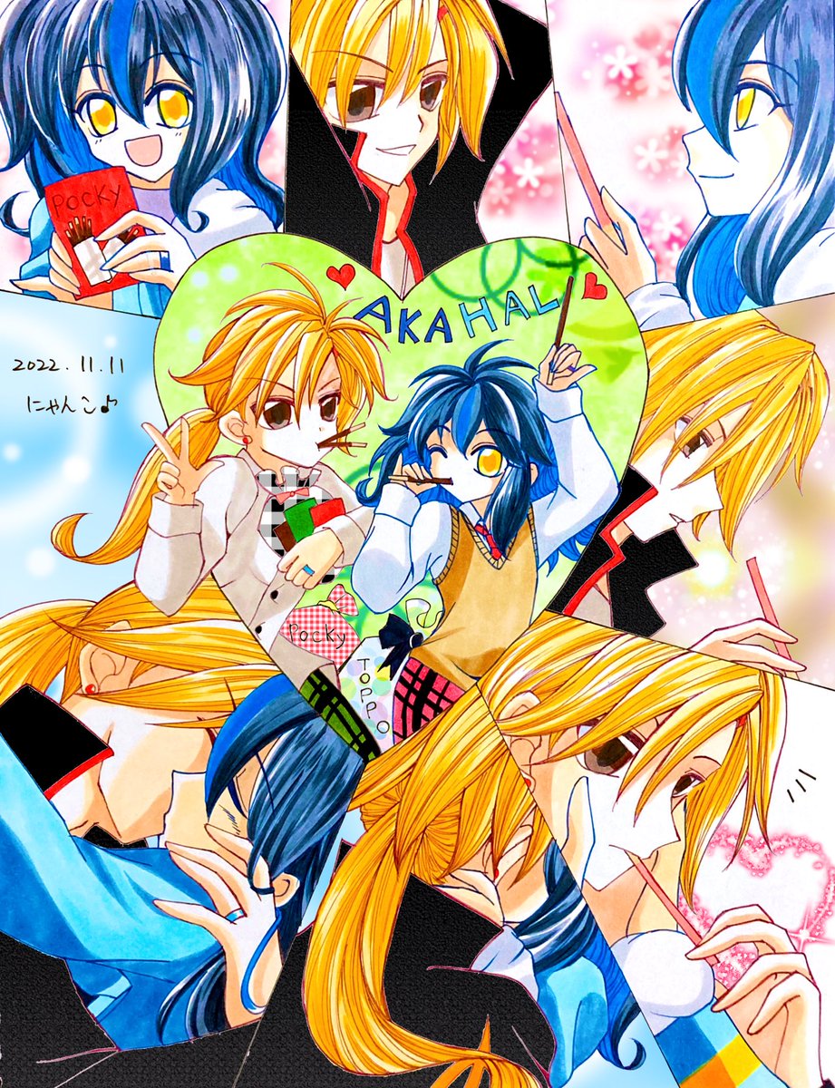 ☪·̩͙アカハル×ポッキー2022ver.☀️ 絵と漫画風の融合リメイク版🎶 今年もLoveったね💗✨✨ #ポッキーの日 #みんなで楽しむTwitter展覧会 #にゃんこのアカハル暴走部屋 #イラスト #二次創作