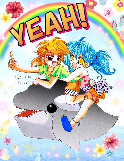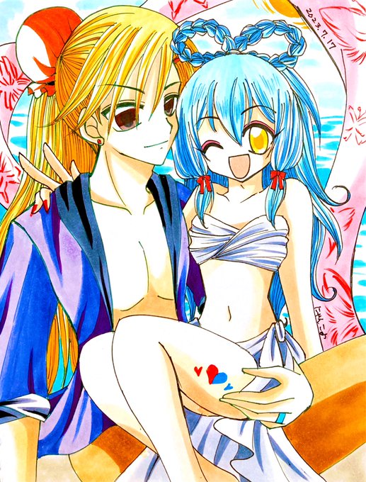 🌺お迎え有難うございました🌺 1番人気だった七夕の2人でお礼させて頂きます(*^^*)🍀✨ この度もネップリ沢山のお迎え感謝します🙏✨✨ #海の日 #アナログ絵 #にゃんこのアカハル暴走部屋2023 #みんなで楽しむTwitter展覧会 #イラスト #二次創作 #BL