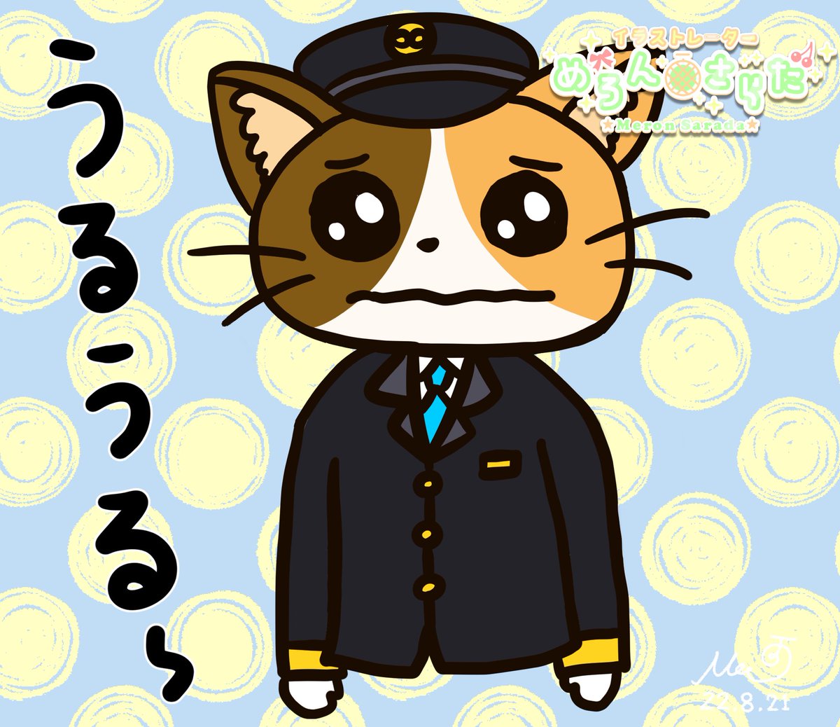 おはめろ🍈☀️ どうしたんだ⁉️にゃんこ運転士😳いつも元気だけど、たまにはこんな表情も描きたくなって描いてみました🤗✨誰だって落ち込む時もあるよね。そんな時は好きな物食べて、好きなことして、いっぱい寝るのが1番の良法だよね🍀 今日も良い1日にしていこう! #おは戦40821an🍨 #にゃんこ運転士
