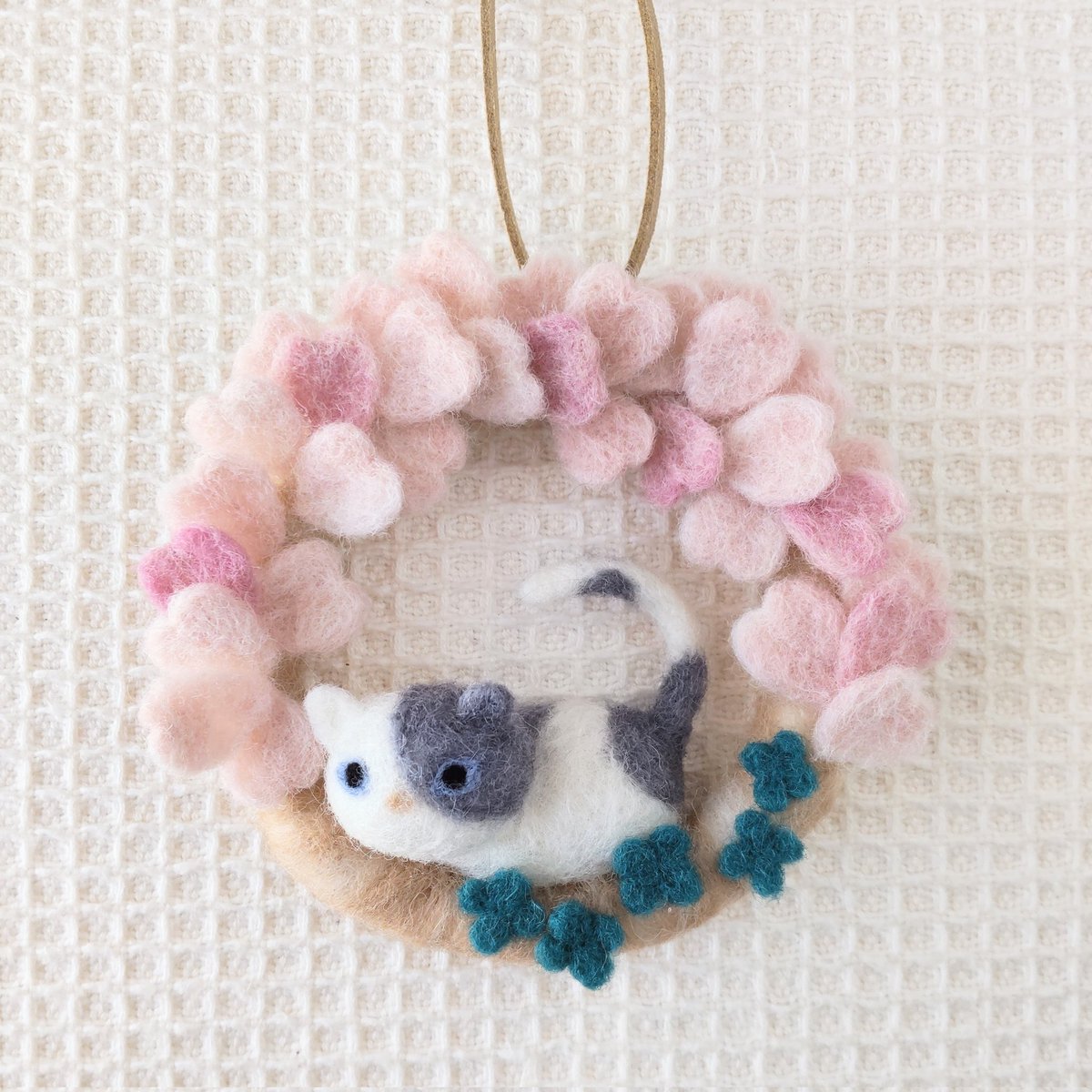 2022/2/22はスーパー猫の日✨ 春先取り〜桜満開の猫リース😸 @Creema_jp にて販売開始しました🎵 #羊毛フェルト #felt #ハンドメイド #桜 #猫の日 #にゃんだふるCreema #cat Creema▶creema.jp/item/13445313/…