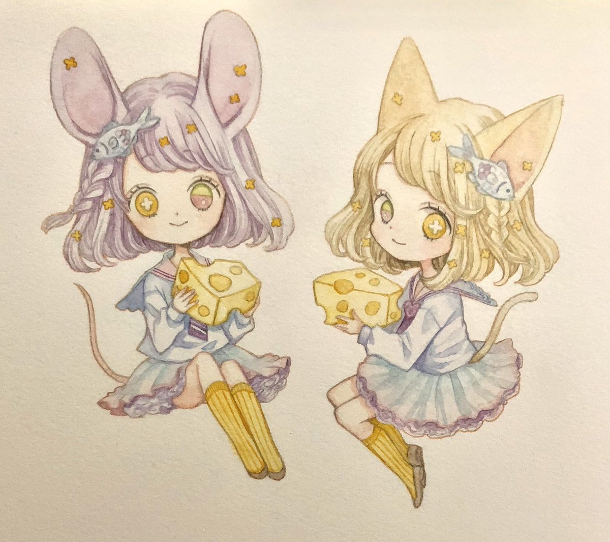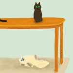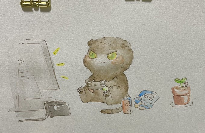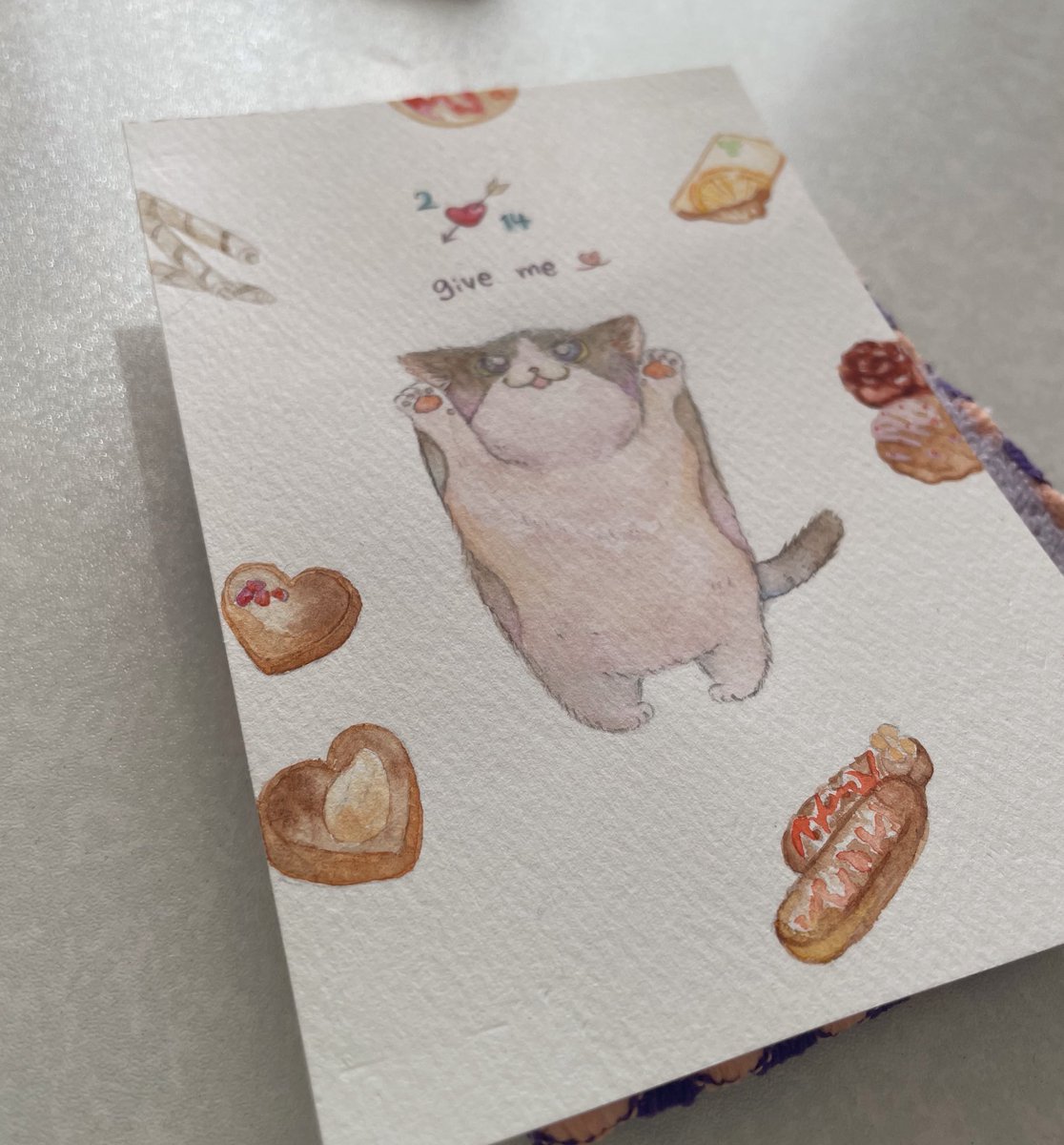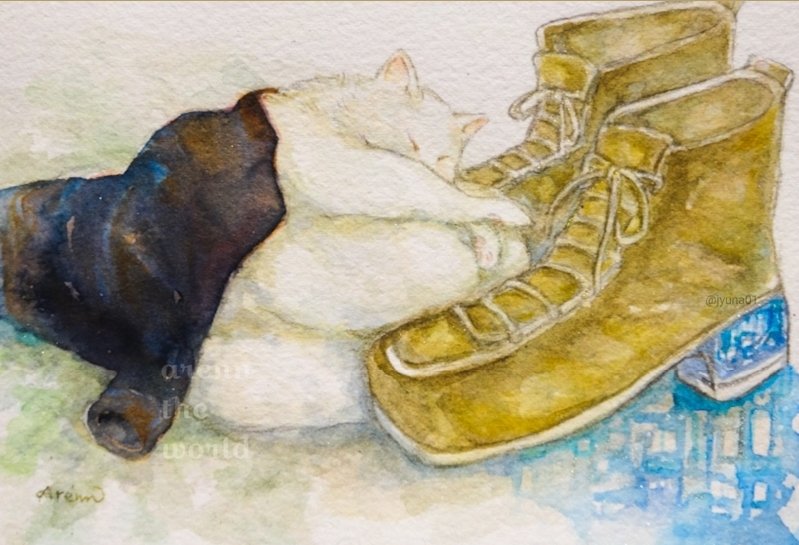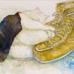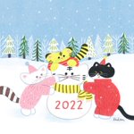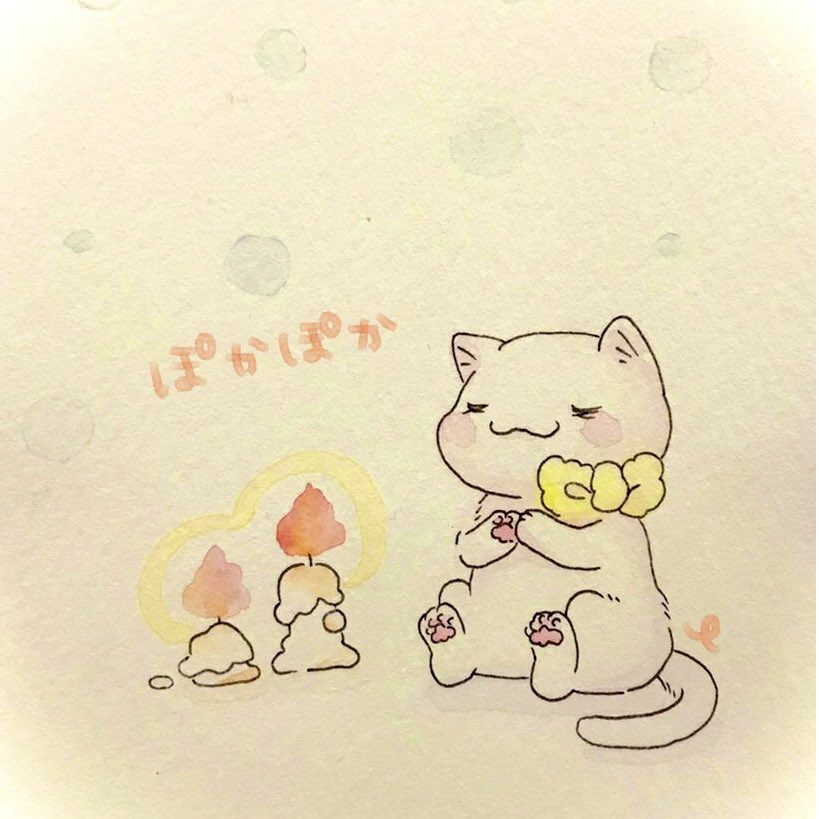#にゃんにゃんにゃん祭 #にゃんにゃんにゃん前夜祭 さっき描いた落書きと過去絵~🎨水彩にハマってます! 2022年2月2日、我が家のちーちゃん🐈はちゅ~る食べて満足されてます( ◜︎◡︎◝︎ )
