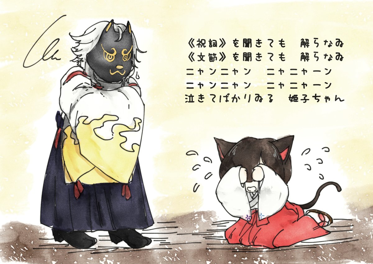 スーパー猫の日!前に描いたやつも添えて。 #illustration #アトリエの系譜S #猫 #猫の日2022 #猫の日イラスト #スーパー猫の日 #猫耳 #にゃんにゃんにゃんの日 #にゃんにゃんにゃん祭