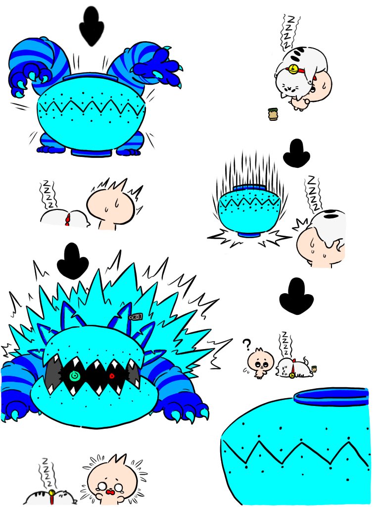 こんにちは! 土曜日ですね!仕事は午前中までで、お昼からは色々と片付けてました😊 にゃん茶です! 世壊獣は意外と多いです #漫画が読めるハッシュタグ #イラスト好きな人と繋がりたい #にゃん茶 #圧死 #角狼世壊獣オオセンロウ
