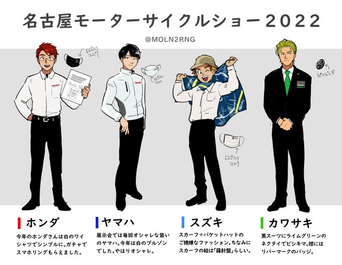 まだ名古屋モーターサイクルショーの余韻に浸っています。実は1日目だけでなく2日目にも行ったので、個人的に一番の目玉であった「高校生ものづくり講座」のレポートを描きました。現地行けなかった人に雰囲気が少しでも伝われば幸いです!(何か問題あれば消す) #バイクメーカー擬人化 #にりんぎ