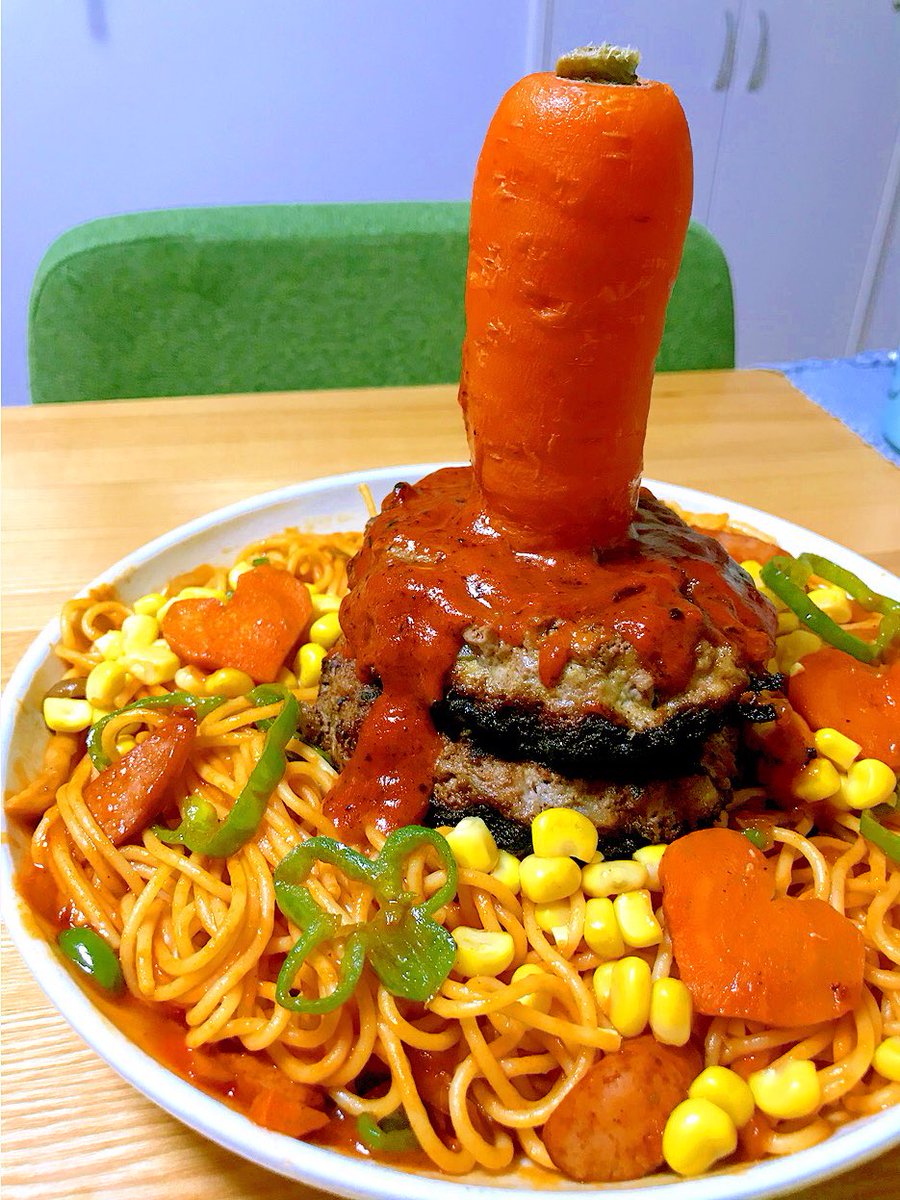 【スペシャルウィークのイラスト ~にんじんハンバーグの写真を添えて~】 なんとか終了までに間に合ったぞ! ステキなコラボでした~😊 #ワーフリウマ娘コラボ #ワーフリ #ワールドフリッパー #ウマ娘 #スペシャルウィーク #にんじんハンバーグ #イラスト