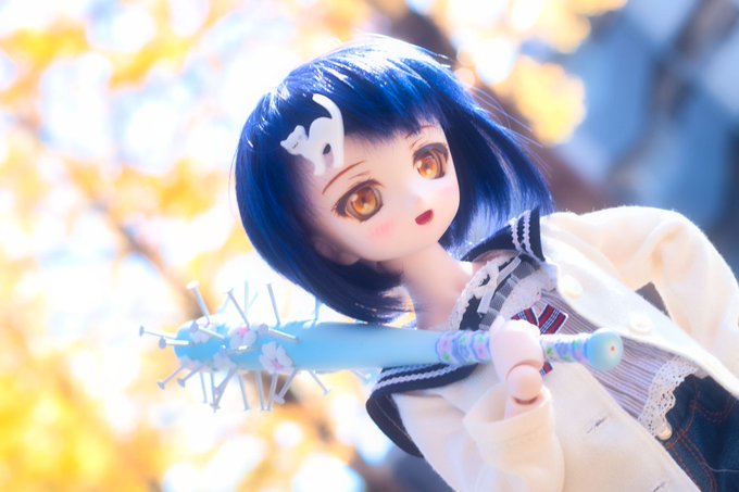 #今夜のドール撮影120分一本勝負 2/21のお題は【今日のラッキーアイテム】 過去 マヤのラッキーアイテムはやっぱりコレだと思う😓 #ぬいっ娘 #フローラル釘バット #うちの子かわいい #MDDはいいぞ #ドールオーナーさんと繋がりたい #ドール野外撮影