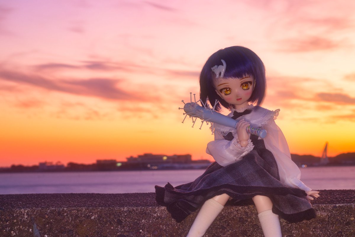 #今夜のドール撮影120分一本勝負 12/17のお題は【おおきい&ちいさい】過去 大きい空とちいさい #フローラル釘バット 「比較そっちかよぉ~🤣」 #うちのこかわいい #MDDはいいぞ #ドールオーナーさんと繋がりたい #ドール野外撮影 #ぬいっ娘