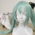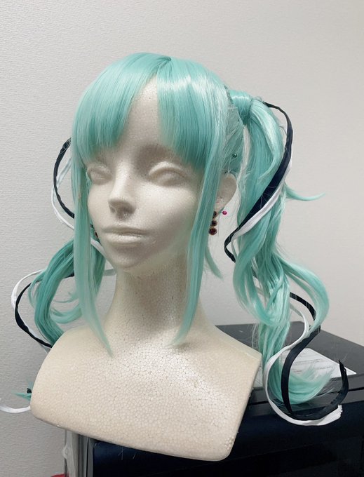 ニゴミクちゃん💻💚でーきた! トルソーの胸はち切れてるけど当日は極限まで胸潰すのでしまる予定🤤✨笑 ウィッグ今回も結い上げたのです💪💪💪 はー!撮影が楽しみー!! #ぬいのあれこれ奮闘記