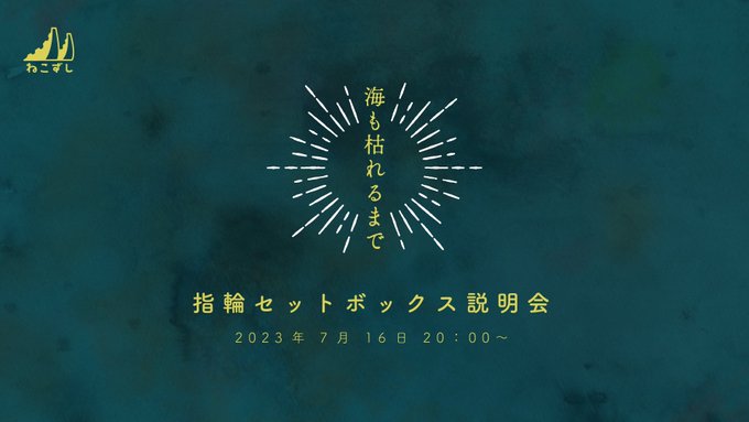 🌊『海も枯れるまで』グッズ説明会 🔻日程 7月16日(日) 20:00〜 7月17日頒布予定の海枯れイメージグッズを紹介する配信を行います❗️ 🔻配信先 youtube.com/live/Tg6cg2tyJ… 🔻商品詳細 twitter.com/necozushi/stat… #ねこずし生