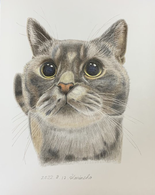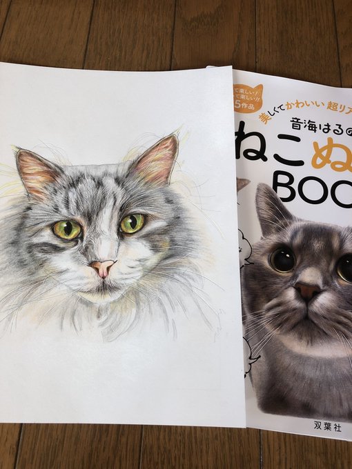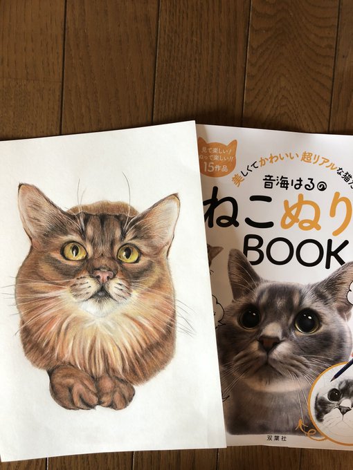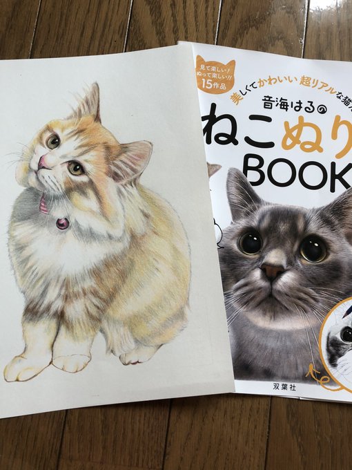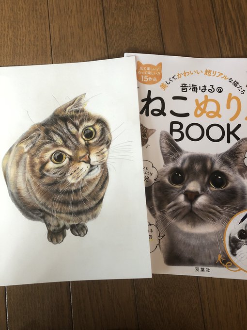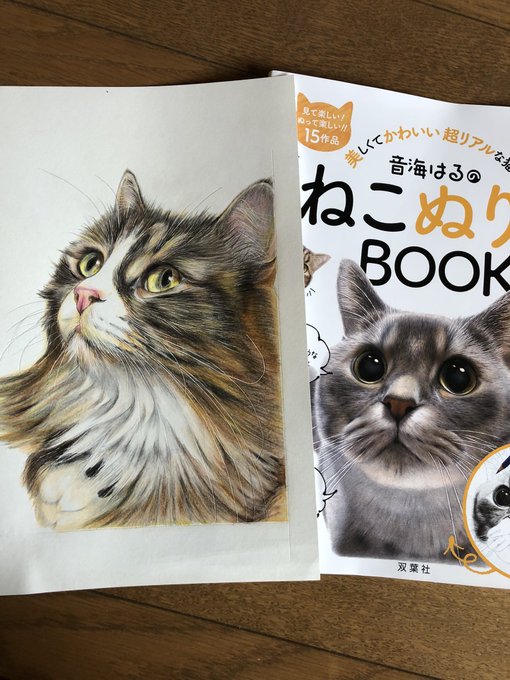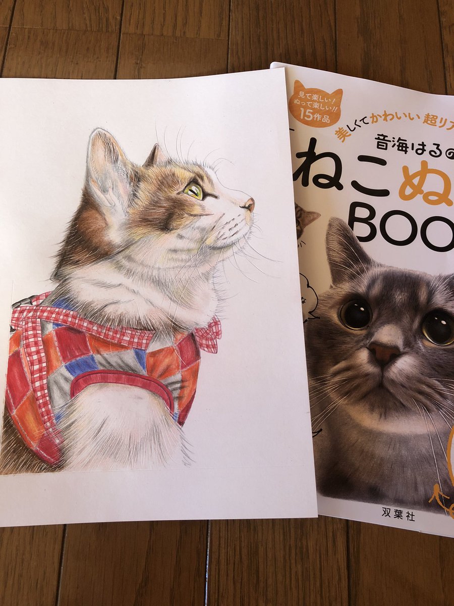 マンチカン完成とします。もう少し赤みのある色を使えば良かった、色選び難しい🤣。額に💛が出来てしまったけどコレはお気に入り。 最後まで楽しかったです❣️ #音海はる さん #ねこぬりえBOOK #colorpencildrawing #色鉛筆画