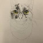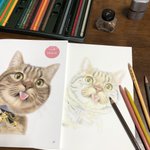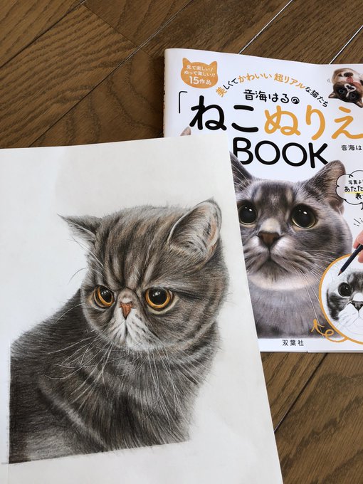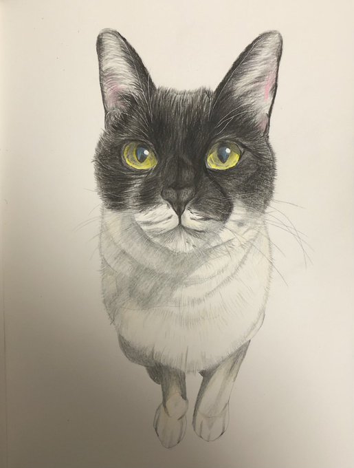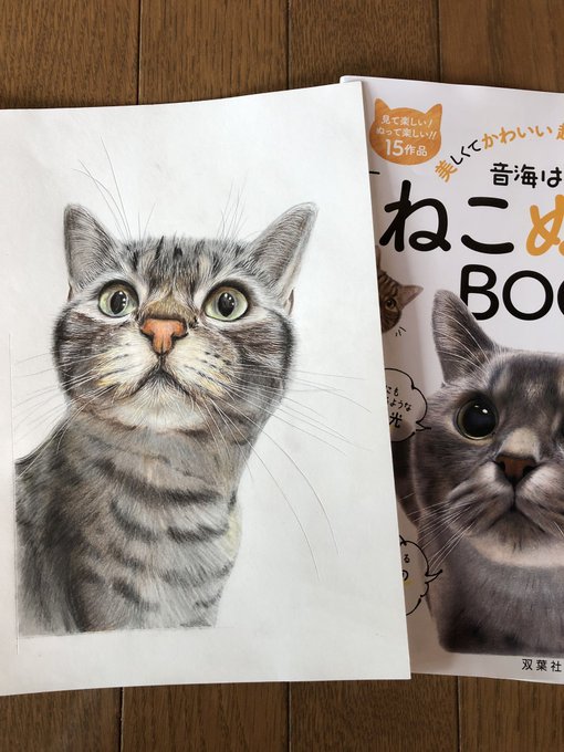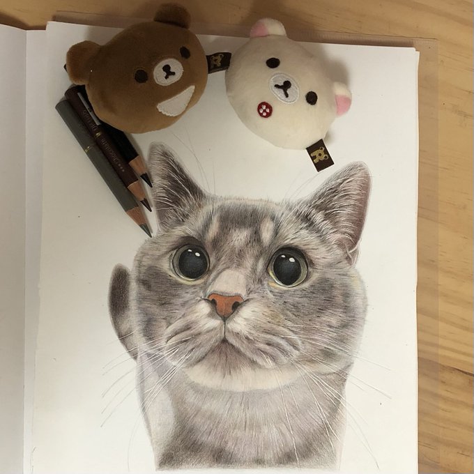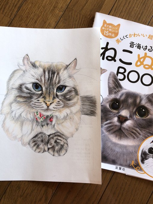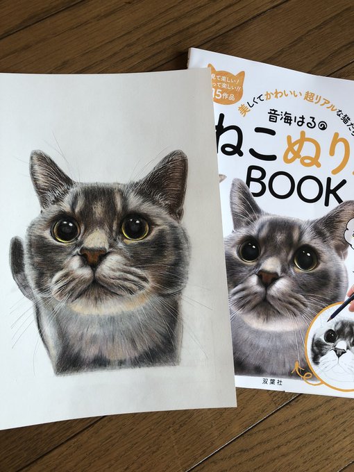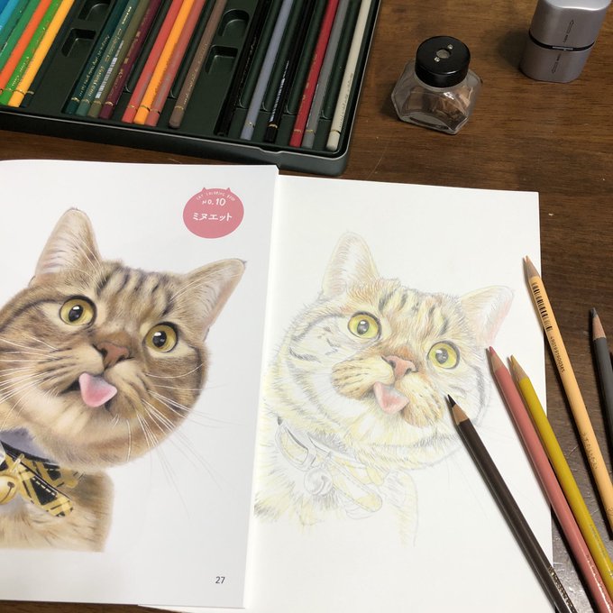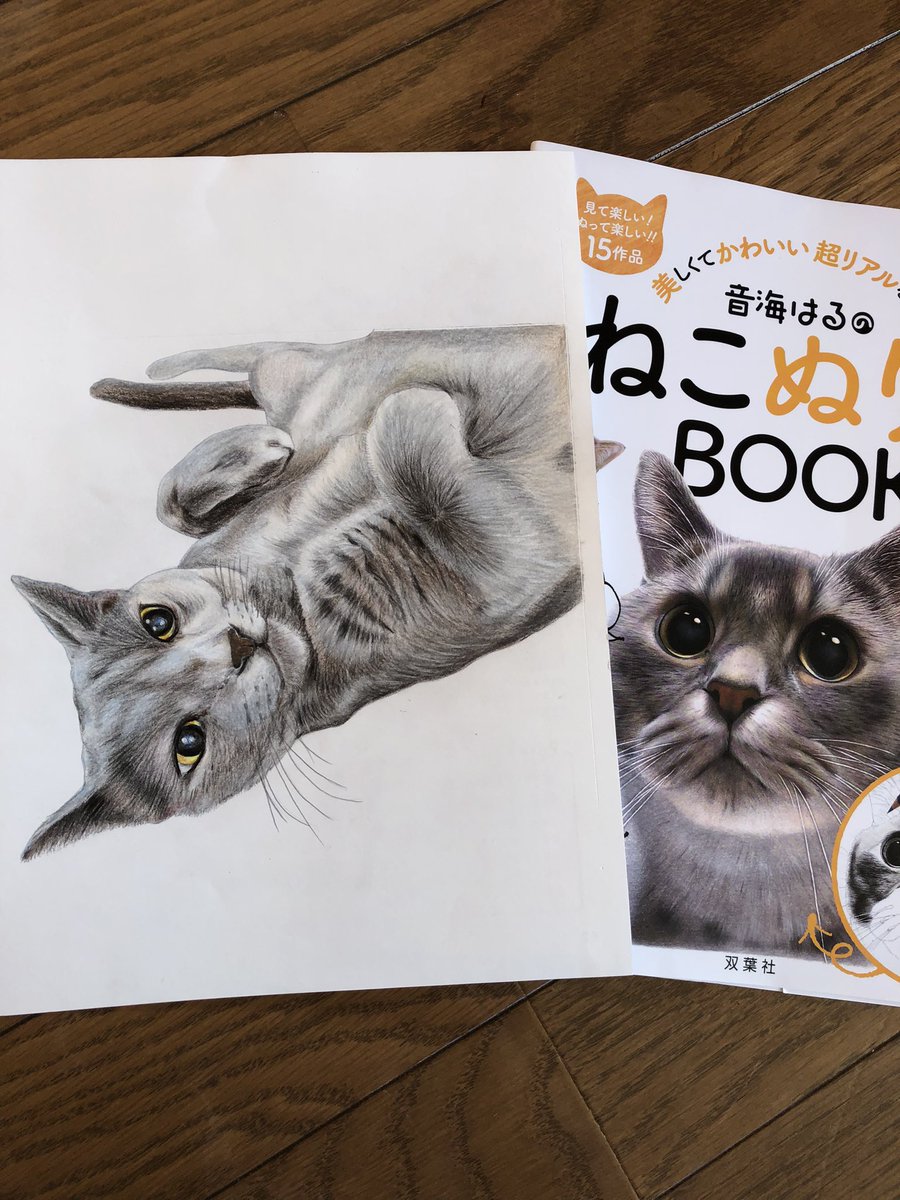 マンチカン完成とします。もう少し赤みのある色を使えば良かった、色選び難しい🤣。額に💛が出来てしまったけどコレはお気に入り。 最後まで楽しかったです❣️ #音海はる さん #ねこぬりえBOOK #colorpencildrawing #色鉛筆画
