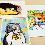 ポストカードが出来てきました。 他にも色んな柄をつくりました。 詳細は来週アップします。 納品予定先はルシャデボワさんです #猫がいる暮らし #スコティッシュフォールド #ハチワレ #CatsOfTwitter #ねこのきもち #イラスト好きさんと繋がりたい #絵描きさんと繋がりたい