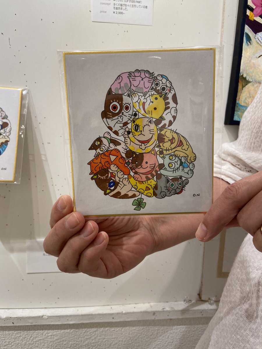 大阪2日目。3ギャラリー合同企画の「#ねこぴん」で、最初に阿倍野区のいぬけんやさん @inu_ken_ 、次に天王寺区のNanogallery @Nano_Gallery さんに行きました。1枚目がいぬけんやさん、2枚目がNanoGalleryさんに出展した作品です。3〜4枚目のミニ色紙は完売しました。 #絵描きさんと繋がりたい