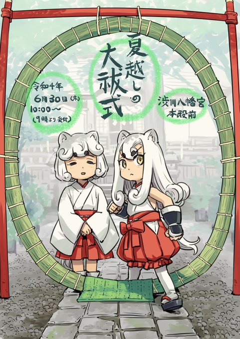 6月30日木曜日午前10時から渋川八幡宮で夏越しの大祓式が開催。 半年の間で知らぬ間に積もった罪や穢れを祓い清め家族みんなが健康に暮らせるようにとお祈りする祭典だそうです。 是非覗いてみよう! 渋川八幡が遠ければお住まいの近所の神社でもやってるかもしれないよ🐱 #ねこむすめ道草日記
