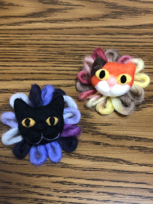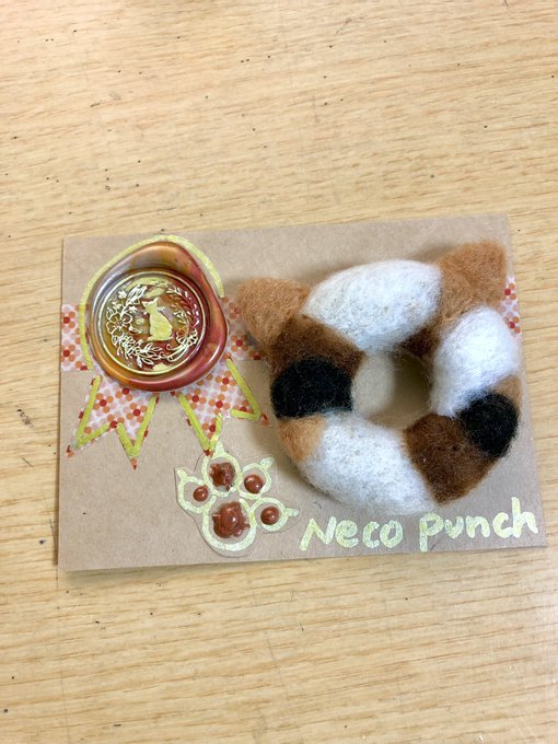 三毛猫ドーナツ🍩のブローチです🐈 はじめてのシーリングスタンプも抱き合わせ✨ #ハンドメイド #羊毛フェルト #ブローチ #シーリングスタンプ #ねこグッズ #ハンドメイド好きさんと繋がりたい