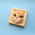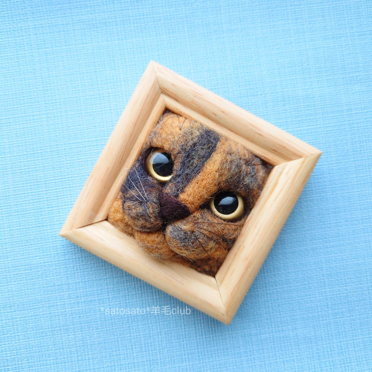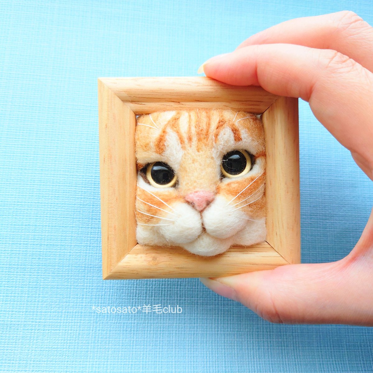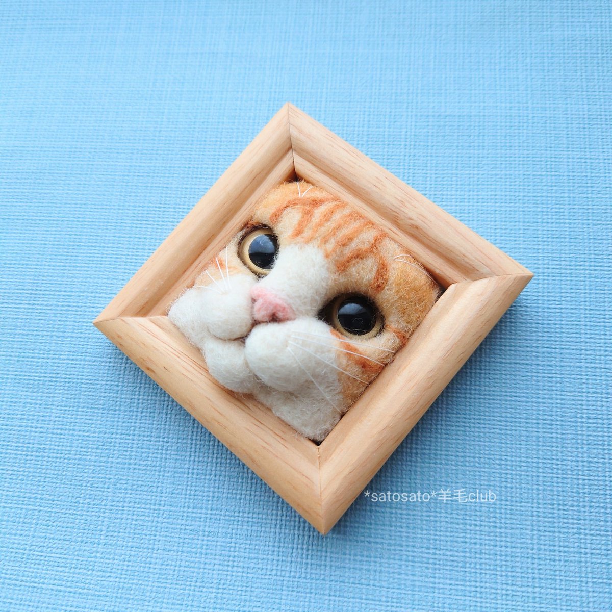 同じ材料、同じ模様だけどお顔はちょっと違う🐱 右の方が子供っぽいよね? #羊毛フェルト #猫フレーム #茶トラ白 #委託販売 #HIMEJI猫フェス2022(山陽百貨店)は開催中 #ねこ休み展夏2022(浅草橋)は19日から開催🎪 #猫好きさんと繋がりたい