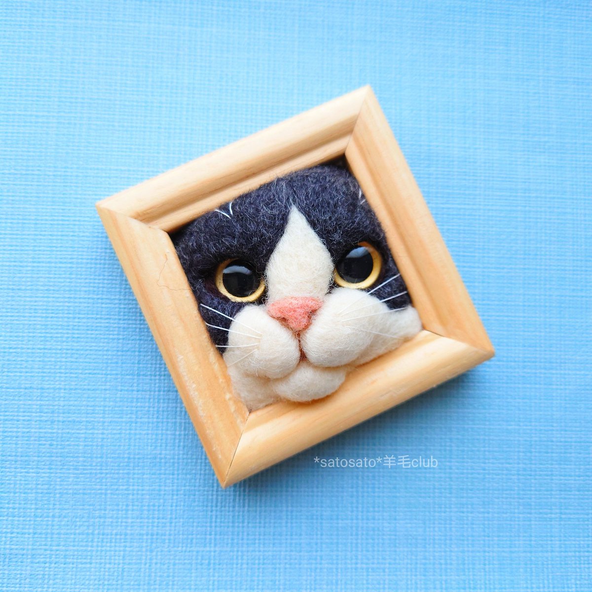 夏休み終わり~。 今日から数日は #ねこ休み展 へ送る作品のラストスパートです🐱 リフレッシュしたので働きまーす。 #羊毛フェルト #猫フレーム #ハチワレ #ねこ休み展夏2022(浅草橋) #猫好きさんと繋がりたい