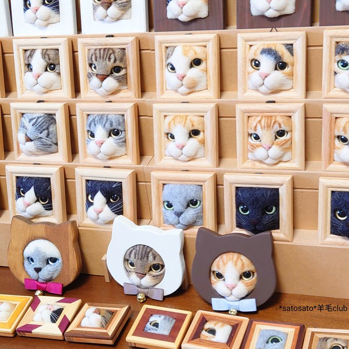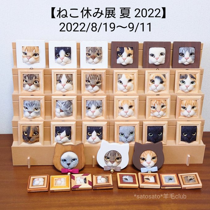 9/11まで絶賛開催中の #ねこ休み展🎪 本日のオープン11:00から追加納品の #猫フレーム 並びます〜🐱 現場からのレポできましたらよろしくお願いいたしますね🙏 #羊毛フェルト #ねこ休み展夏2022(浅草橋) #猫好きさんと繋がりたい