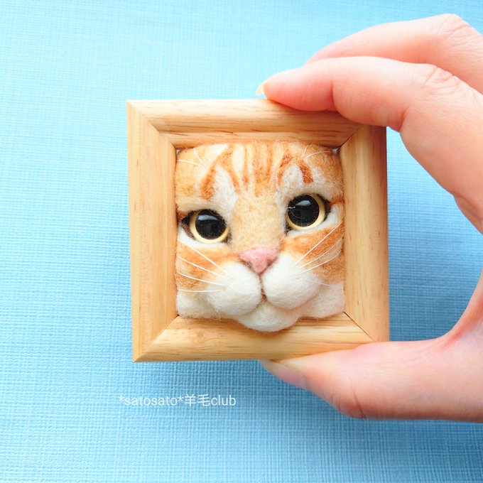 昨日の #タブル猫フレーム と通常版の大きさ比べ🐱 実は目の大きさは一緒のものを使ってるから、タブルは比重的にお目々大きめで仔猫風になります♪ ※右の #茶トラ は 既出の #ねこ休み展 に行く予定の子です。 #羊毛フェルト #猫フレーム #ねこ休み展夏2022(浅草橋) #猫好きさんと繋がりたい