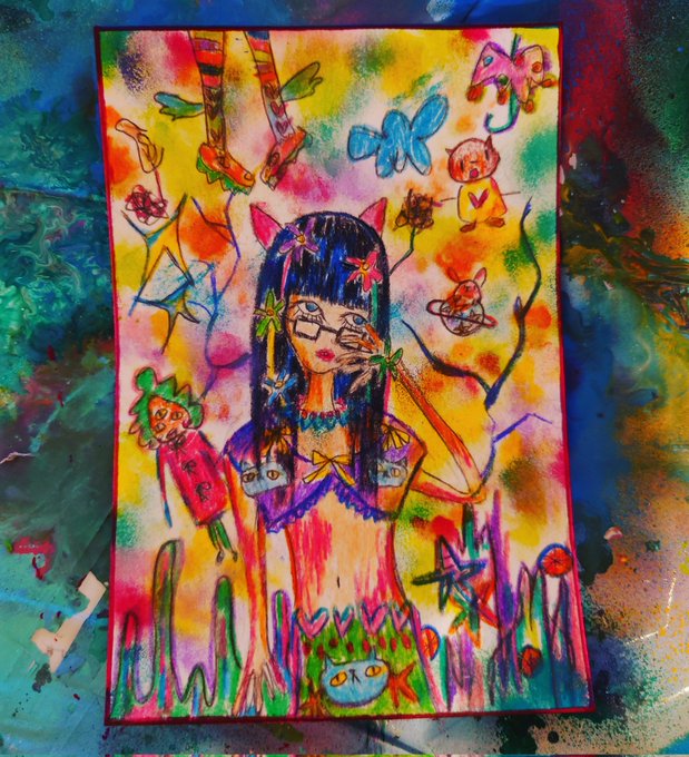 ネコニンゲンネコニンゲンねこ #絵かゆ #絵が好きな人と繋がりたい #イラスト好きさんと繋がりたい #色鉛筆画 #アクリル画 #絵柄が好みって人にフォローされたい #ねこ子ねこ子 #ねこ #サイケデリック