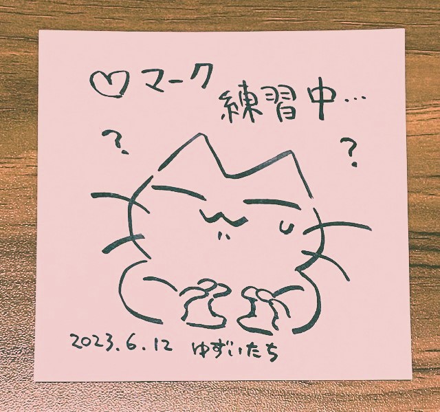 ♡のポーズを練習中のねこ🐱🫶 #ねこ #ねこ絵 #イラスト #アナログ絵 #ゆるい絵 #絵の世界 #絵描きさんと繋がりたい #絵柄が好みって人にフォローされたい #cat #illustration