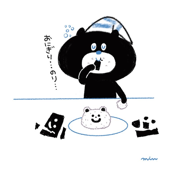 ねごとくまのねごと。 おにぎりアクションに参加したくて…くまおにぎり作ってみました。刻んだ海苔も食べます… 顔を作ると海苔がこうなるよね…🍙 #OnigiriAction #OnigiriAction2022 #イラスト #イラスト好きさんと繋がりたい #おにぎり #ねごとくま