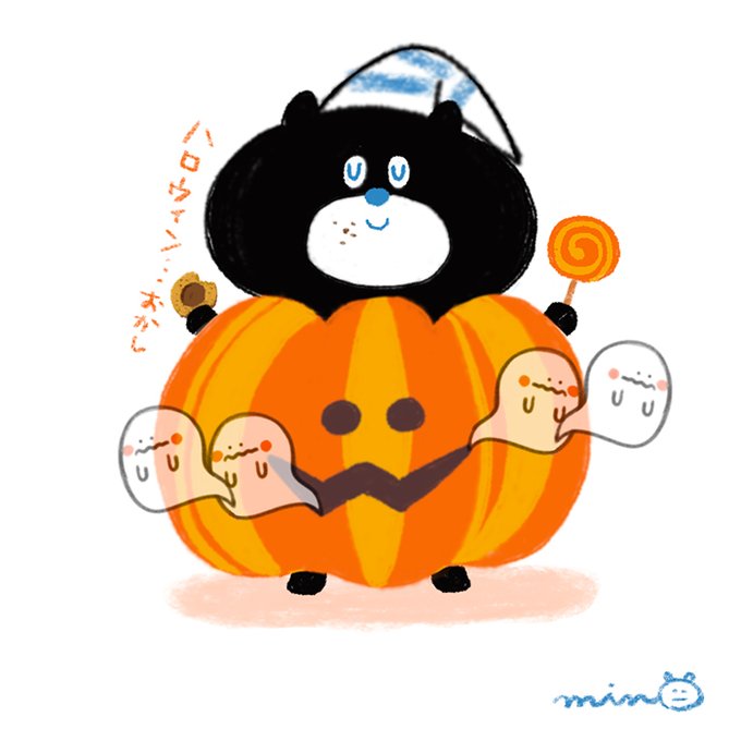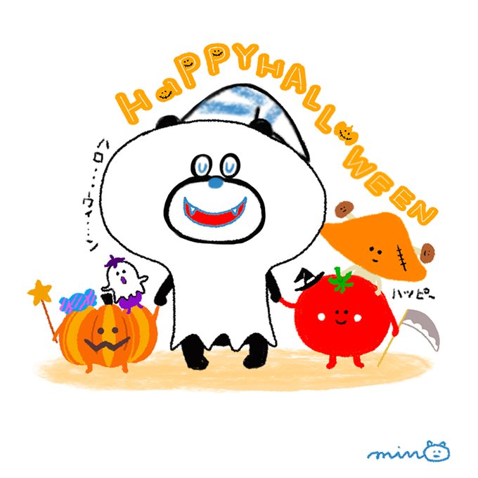 ねごとくまのねごと。 ハロウィンですね🎃…かぼちゃさんにコスプレしてみました… おばけさん…いってらっしゃい…お菓子美味しい…💤 #ねごとくま #キャラクター #イラスト好きと繋がりたい #ハロウィンイラスト #ハロウィン #Aランチサラダ付