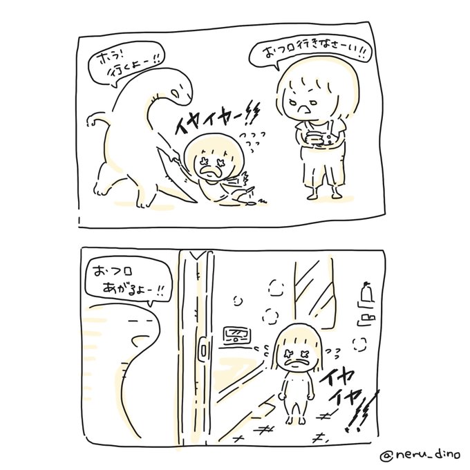 すんごい、もうすんごい勢いで泣くイヌ。 #ねてるきょうりゅう #家族日記 #育児日記 #育児絵日記 #育児漫画 #育児 #子育て #ママ垢さんと繋がりたい #漫画が読めるハッシュタグ #イラスト