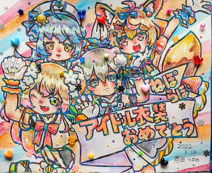今日と明日はライブとEXPOという事でアイドル衣装のお披露目があった5期生を描いてみました。 会場には行けませんが行かれる方は楽しんできてください。 #つながるホロライブDAY1 #つながるホロライブDAY2 #ねぽらぼアイドル衣装 #ねねアルバム #絵まる #LamyArt #ししらーと #ホロライブ