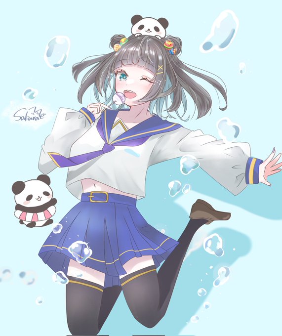 ねむさん@_nemu_dayo の代理ちゃんのラムネちゃん描かせていただきました〜!!!インナー青もお団子もセーラーもぐうかわ #ねむのめざまし #イラスト好きな人と繋がりたい #絵描きさんと繋がりたい #イラスト