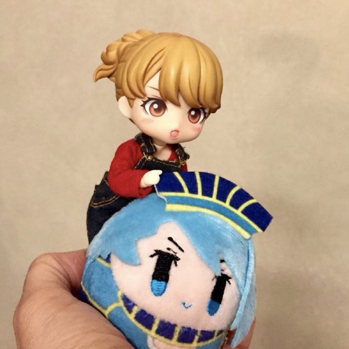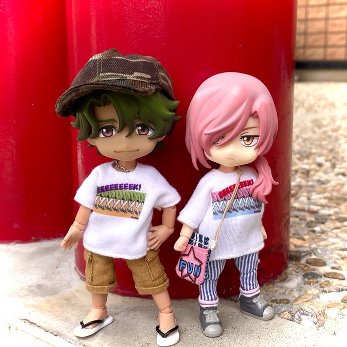 隣に幼馴染生やしてみました🌱 髪型的に高校卒業以降〜現在の中間的な? アユさんのTシャツ、ランガと暦くんコンビにもジョーとチェリーのコンビにも両方ハマるのいいよお…😂🙏✨ #ねんどろいどカスタム #SK8どーる部 #Calalka twitter.com/btbume/status/…