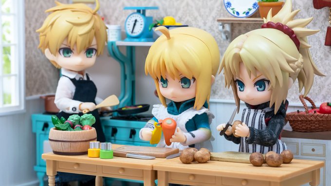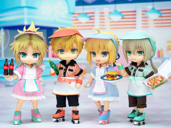 ねんどろいどどーる おようふくセット ダイナーのBoyとGirlをブリテン親子+ベディに着てもらいました。 どの色も可愛くてみんな似合うので、着せかえがとても楽しいです🥰 #ねんどろいどカルデア