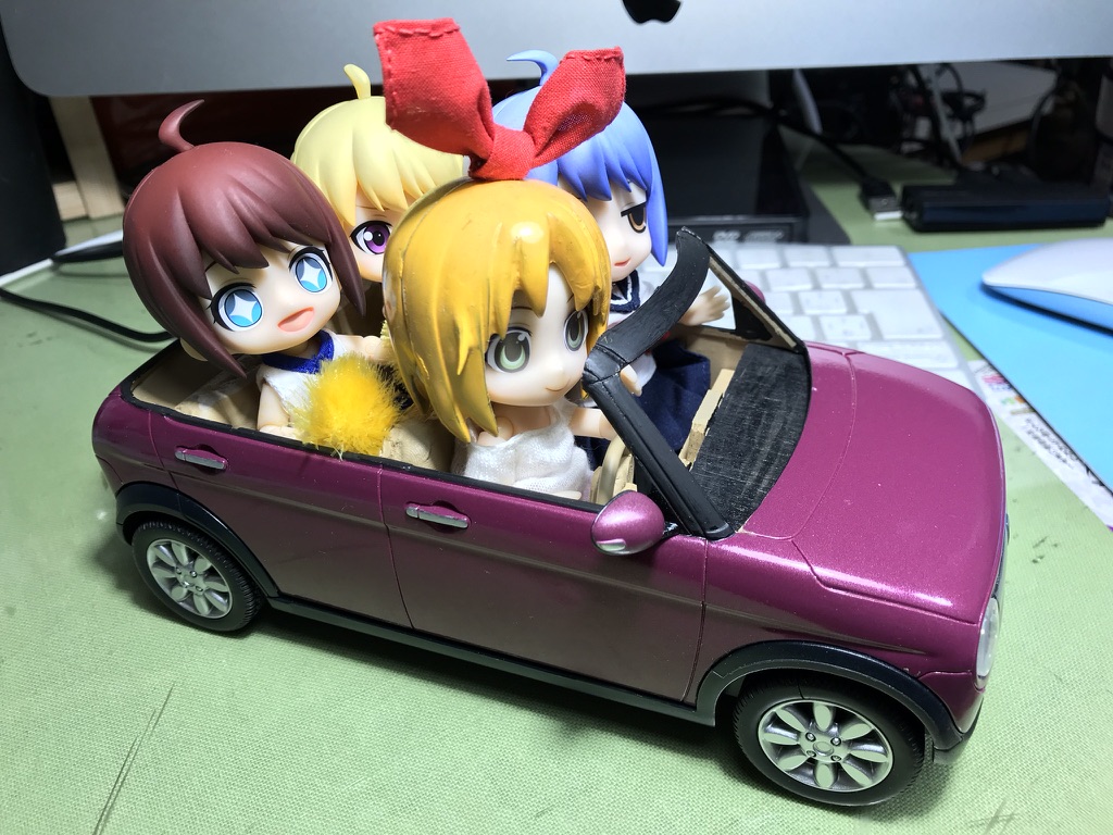 @Gunma8521 #ねんどろいど自動車部 〈 #キューポッシュ も可〉… 面白そうですね☆ ジョリー工務店では1/18スケールのミニカーをキュポカーに改修しています♪ 身体の収まりは良いのですが頭部は入りませんので〈★〉,オープンボディ限定です!? ラパン・S660に続き,スペーシアとコペンを製作中です…