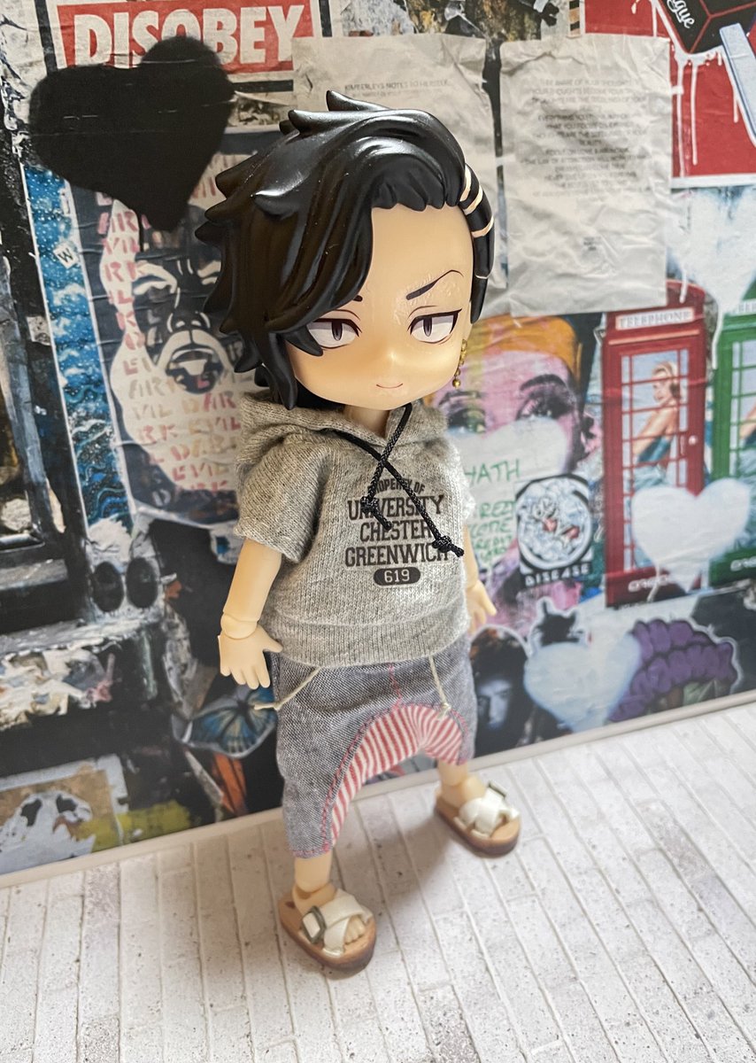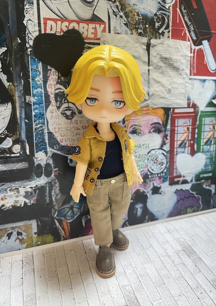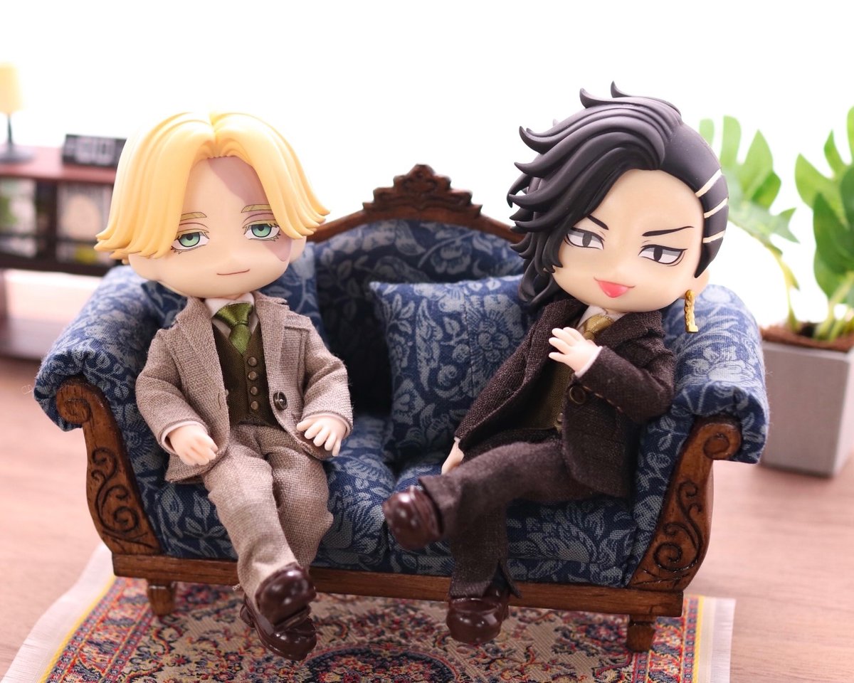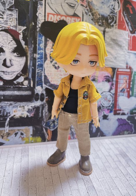 「隊長〜〜メシ行きましょーーー。」 副隊長ハルチヨ出来ました。 やっぱり隣にムチョ立たせたくなってしまった… この頃の2人が好きでした… 髪色は金とピンクどっちにすべきだろう🤔いつか塗り替えるかも。 #東卍ドール部 #ねんどろカスタム #ねんどろいどカスタム